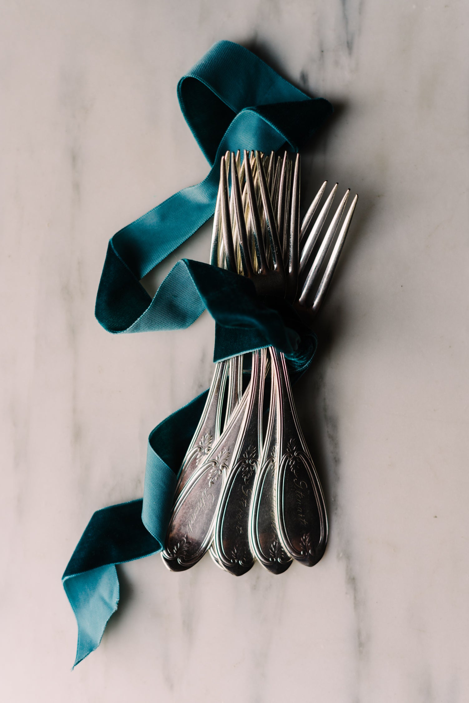 Set of two 19th century luncheon forks featuring the name of "Stewart" across each handle in elegant script. Perfect for holiday or familial entertaining.